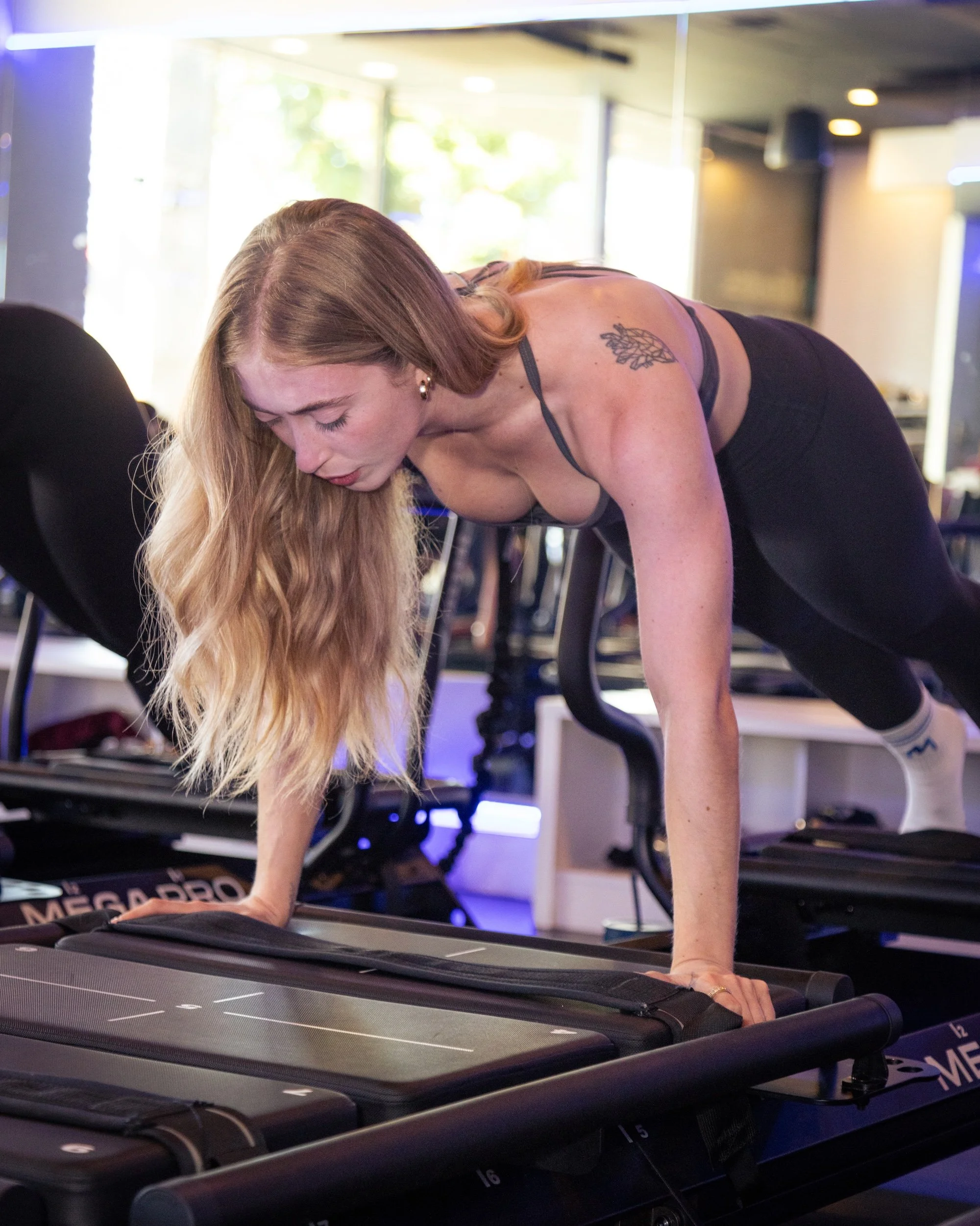 The Megaformer workout is built on slow, controlled resistance training designed to challenge every major muscle group while remaining low-impact and joint-friendly.